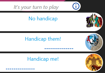 If you select the handicaps option, it allows one player to start with a significant advantage: perfect for sneaky, cheating villains! The following options will appear: